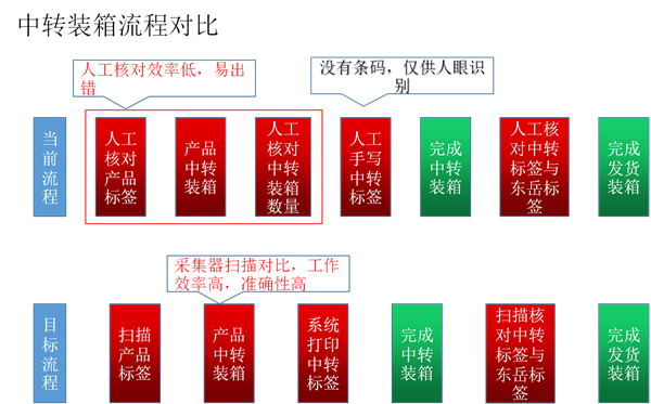 2.中轉(zhuǎn)標(biāo)簽與箱內(nèi)產(chǎn)品數(shù)量需要人工核對,容易出現(xiàn)問題;